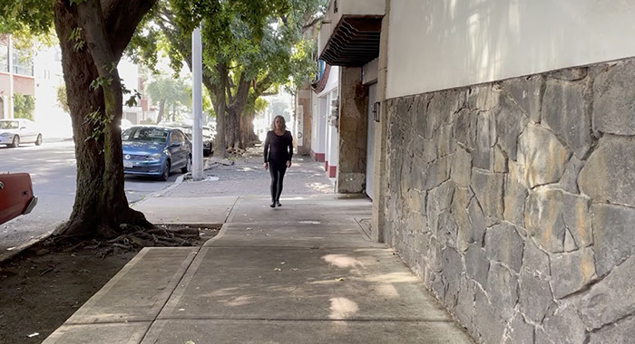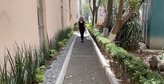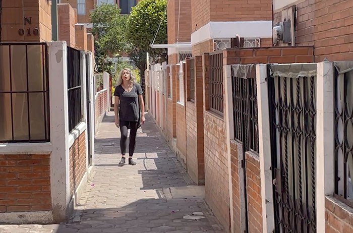 Para esta acción decidí un encuadre frontal y también la realización en varios sitios específicos, en concreto los lugares en los que viví entre 1978 y 1995 (año en que obtengo la nacionalidad mexicana). El uso de diversas locaciones funcionó para hablar de la ciudad de México pues un solo sitio no representaba su diversidad.
