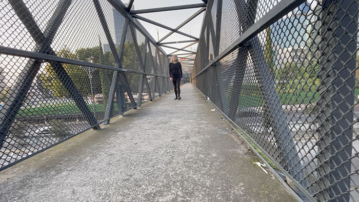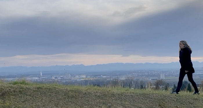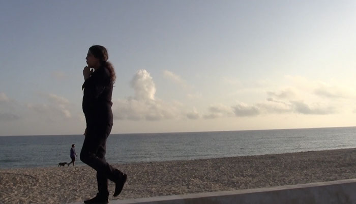 Con una cámara fija cuyo encuadre funcionó a modo de ventana, caminé de ida y vuelta silbando.