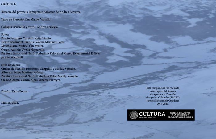 Se buscó examinar la psicogeografía propia que es trazada entre la Ciudad de México y Montevideo, así como la de mi tío bisabuelo tejida entre Uruguay, España, Francia y Austria.